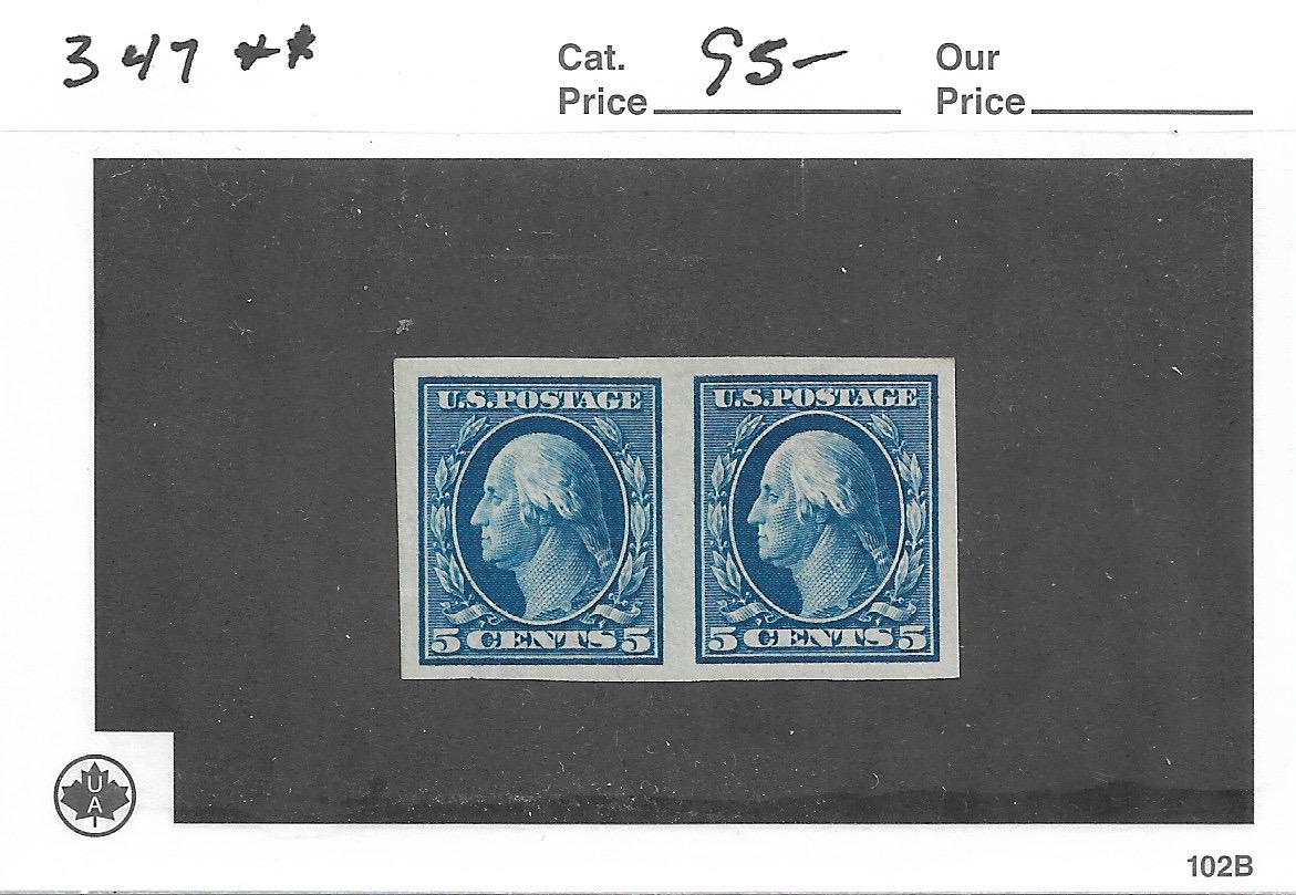 | 5c Washington Imperf Pair Sc #347, MNH. | Price: $55.00