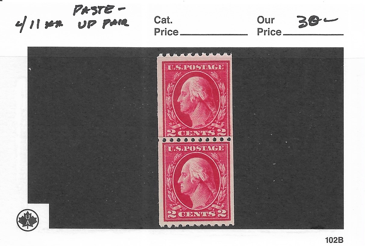 | 2c Washington Coil Paste Up Pair, Sc #411, MNH. | Price: $30.00