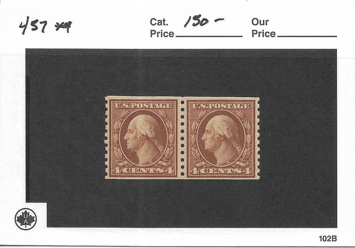 | 4c Washington Coil Pair, Sc #457, MNH. | Price: $90.00