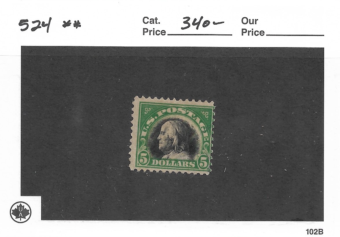 | $5.00 Franklin, Sc #524, MNH. | Price: $210.00