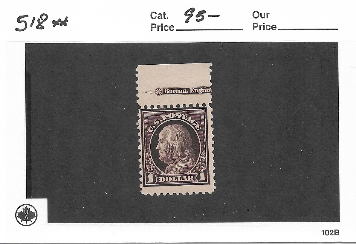 | $1.00 Franklin, Sc #518, MNH. | Price: $50.00