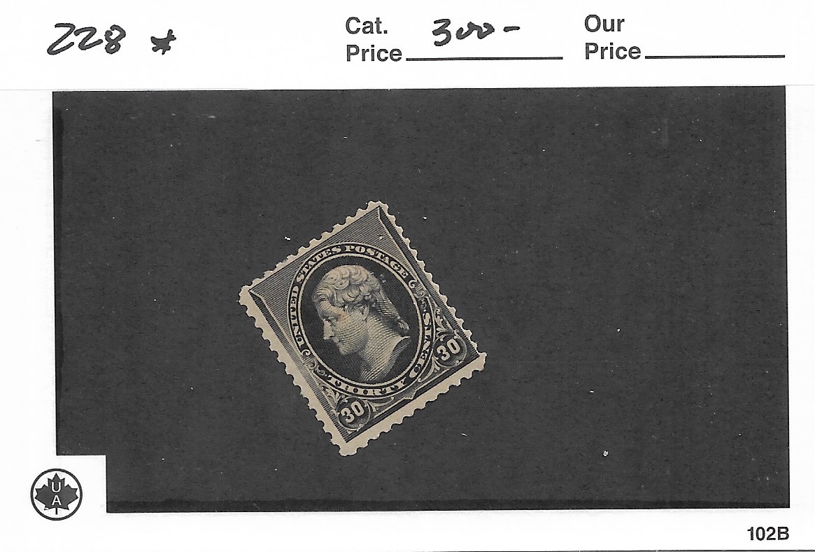| 30c Small Banknote, Sc #228, MH. | Price: $180.00