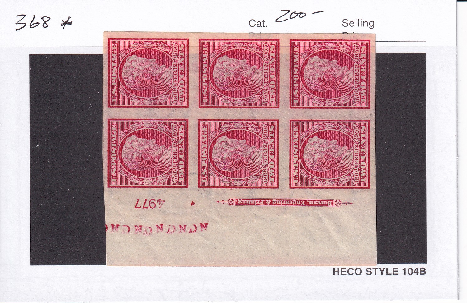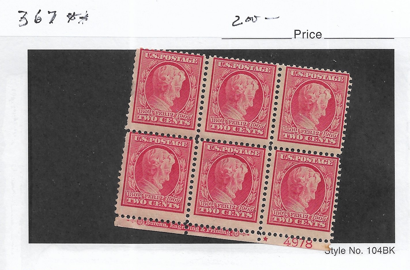 | 2c Lincoln Plate Block/6, Sc #368, MH. | Price: $100.00