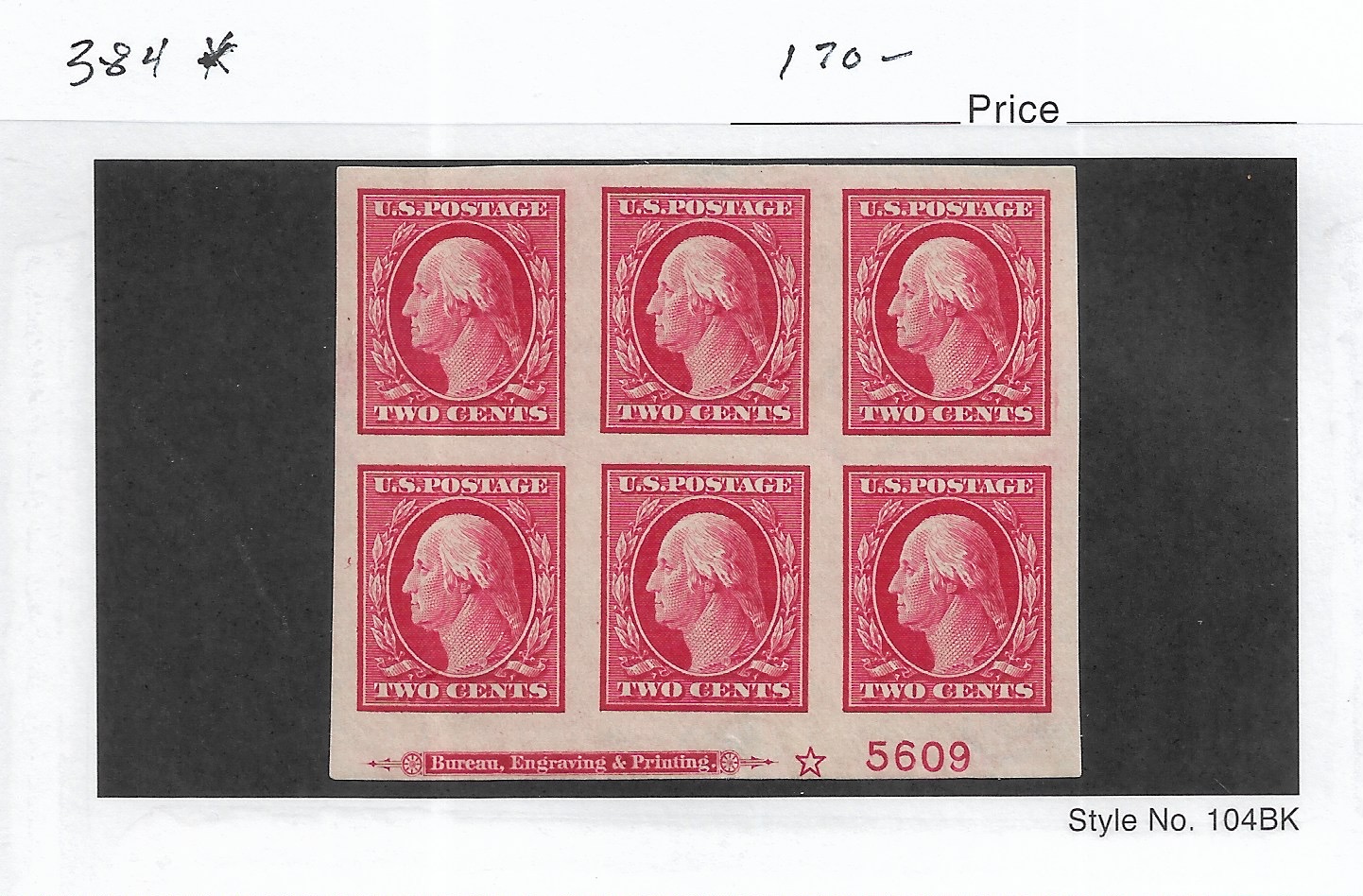 | 2c Washington, Sc #384 Plate Block, MH. | Price: $100.00
