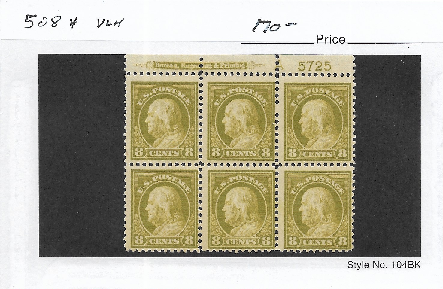| 8c Franklin, Sc #508, MH (very light) Plate Block. | Price: $100.00