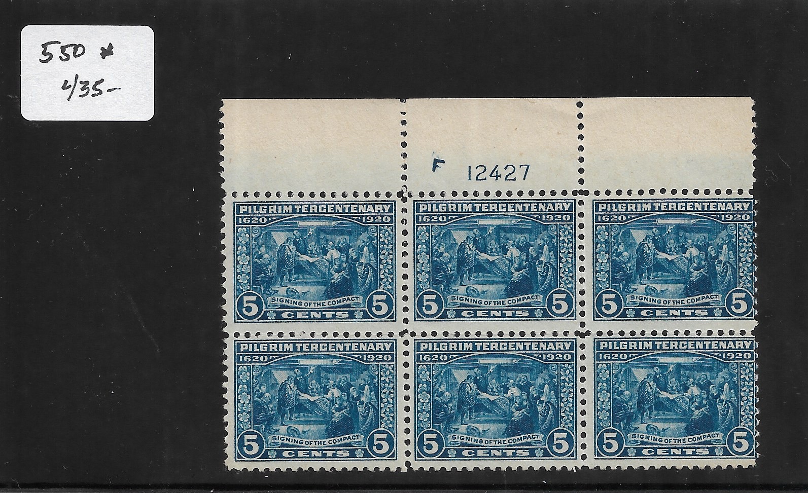 | 5c Pilgram Tercentenary, Sc #550, MH Plate Block. | Price: $295.00