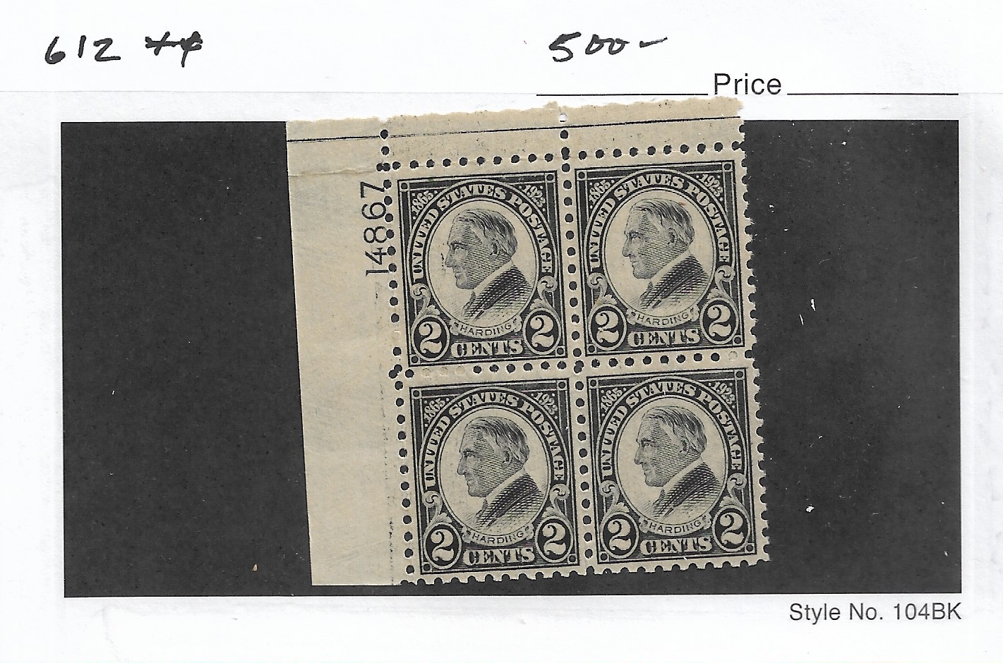 | 2c Black HArding, Sc #612, MNH Plate Block. | Price: $395.00