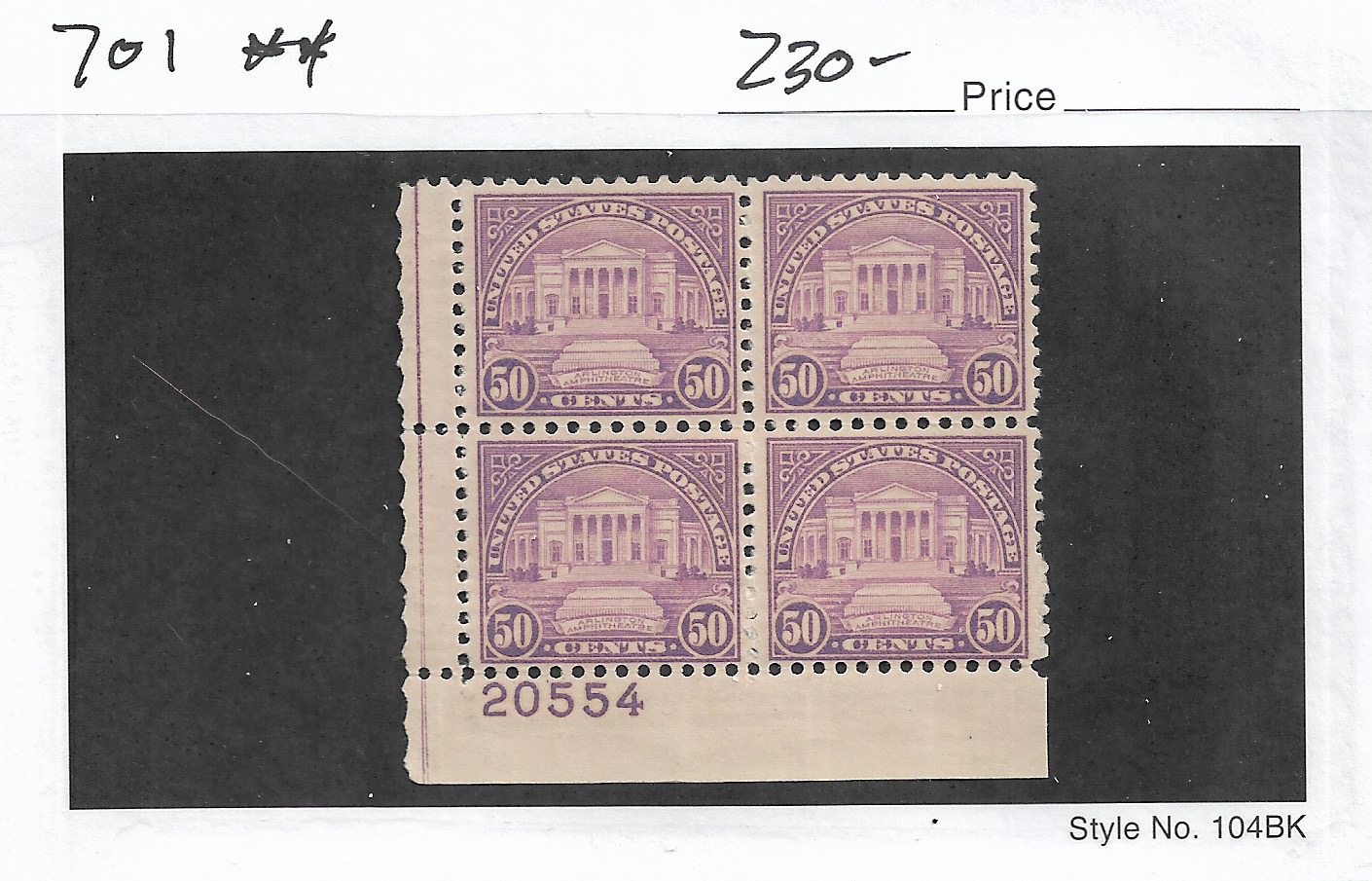 | 50c 4th Bureau Issue, Sc #701, MNH Plate Block. | Price: $175.00