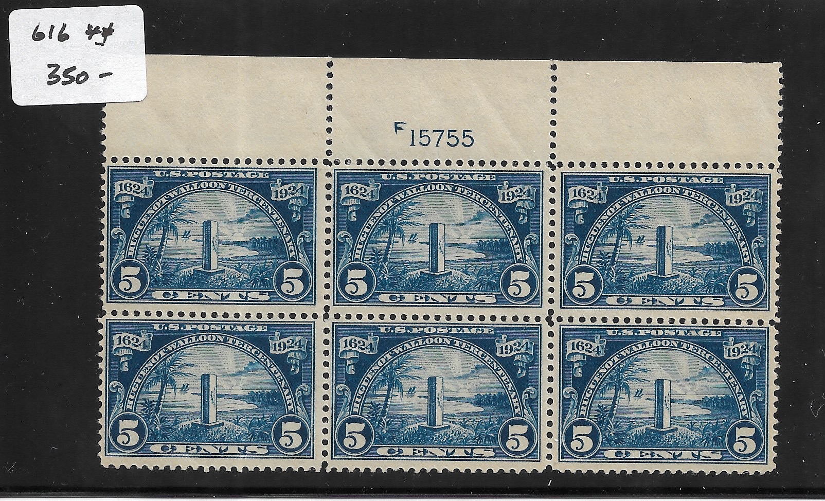 | 5c Huguenot-Walloon, Sc #616, MNH Plate Block. | Price: $275.00