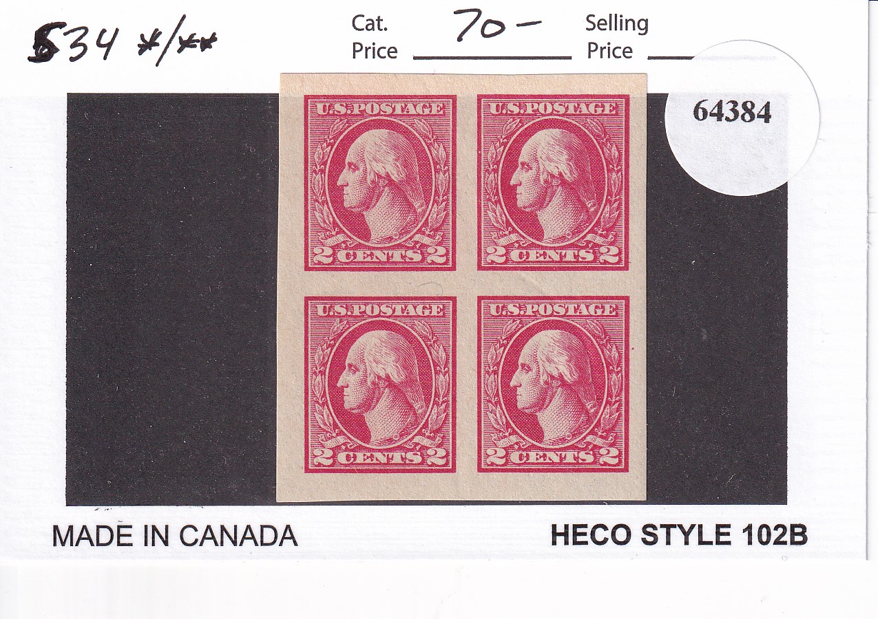 | 2c Washington Imperf Blk/4, Sc #534, MH/MNH. | Price: $40.00