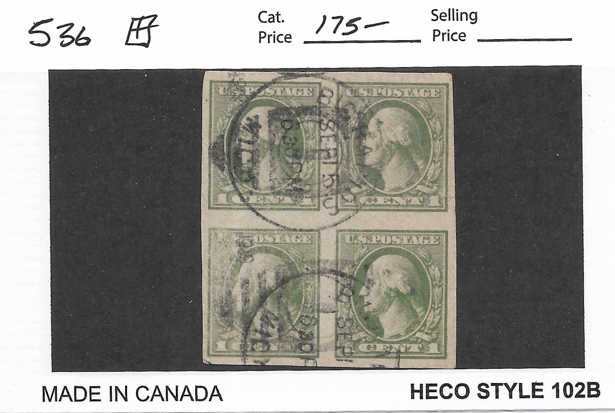| 1c Washington Imperf Blk/4, Sc #536, used. | Price: $100.00