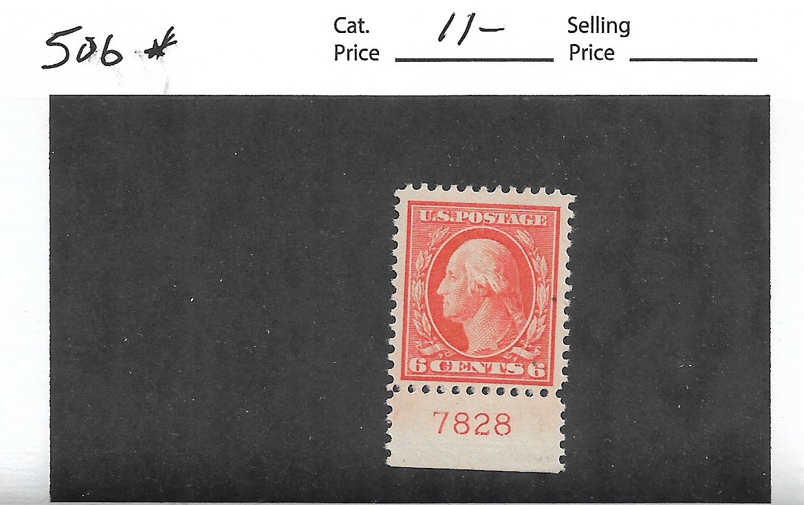 | 6c Washington Plate Number Single, Sc #506, MH. | Price: $6.00