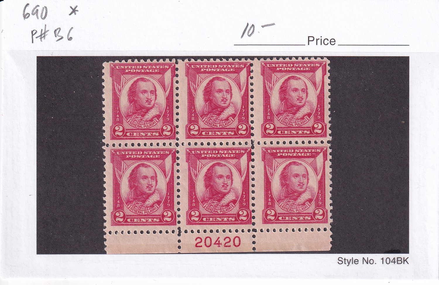 | 2c Pulaski Plate Block/6, Sc #690, MH. | Price: $5.00