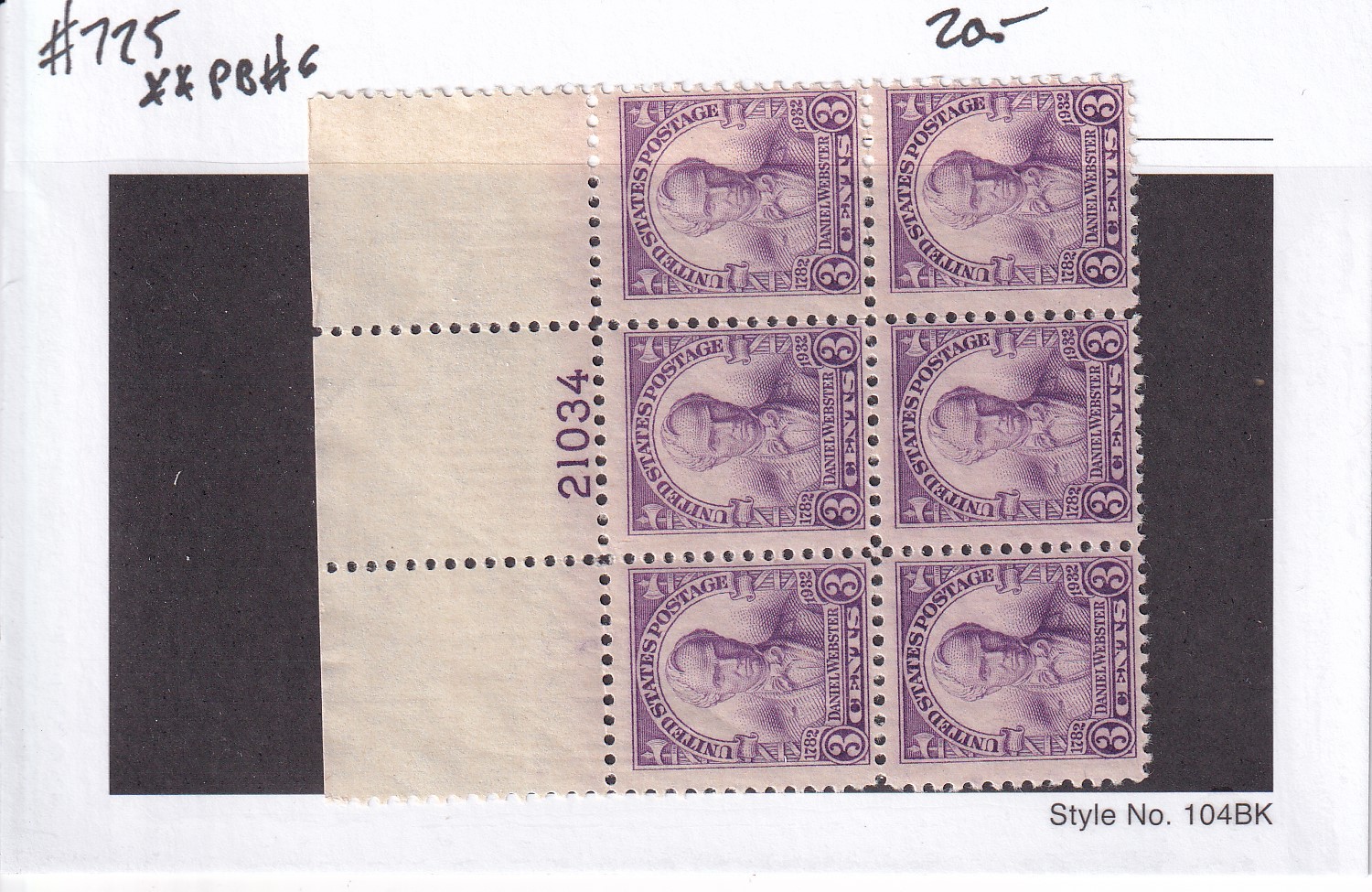 | 3c Webster Plate Block/6, Sc #725, MNH. | Price: $14.00