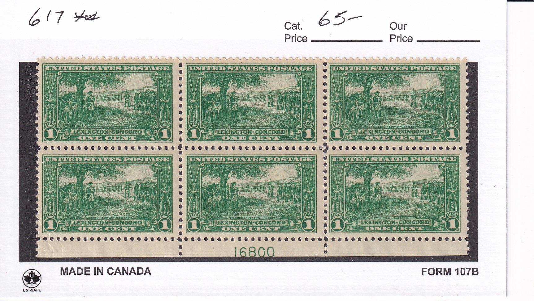 | 1c Lexington-Concord Plate Block/6, Sc #617, MNH. | Price: $45.00