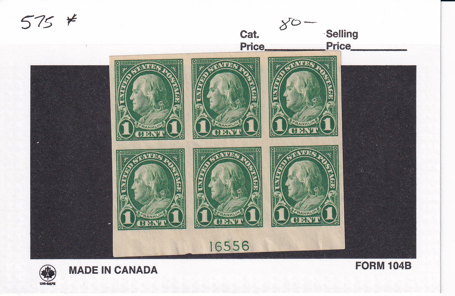 | 1c Franklin Plate Bloc/6, Sc #575, MH. | Price: $40.00