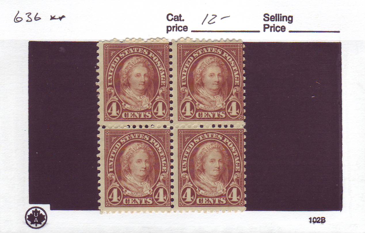| 4c Martha Washington, 4th Bureau Issue, Scott #636, MNH Block/4. | Price: $9.00