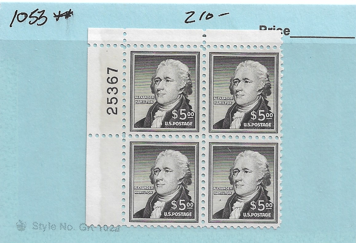 | $5 Hamilton PLate Block, Sc #1053, MNH. | Price: $175.00