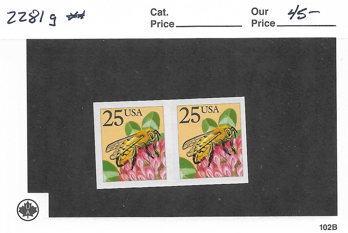| 25c Bee Coil Pair IMPERF BTW, Sc #2281g, MNH. | Price: $40.00