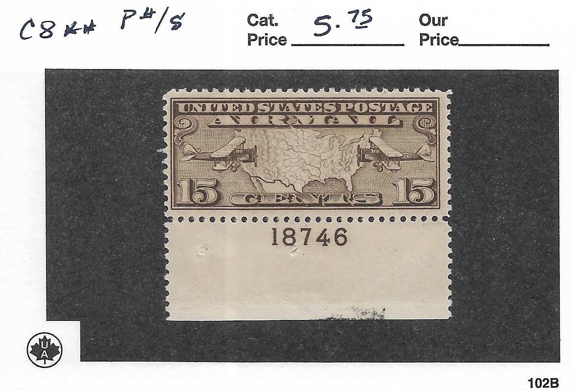 | 15c Plane/Map Airmail, Sc # C8, MNH Plate Number Single. | Price: $4.00