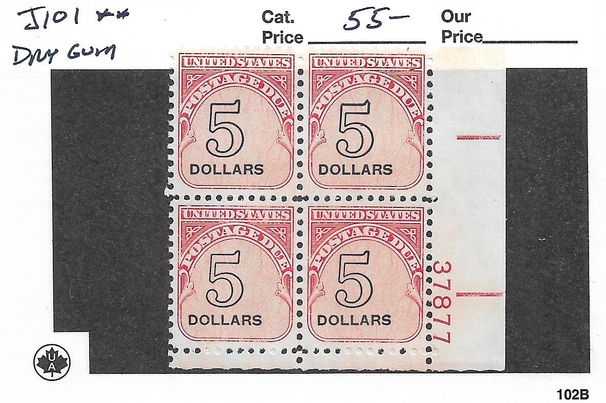 | $5 Postage Due, Sc #J101, MNH Plate Block (Dry Gum). | Price: $32.00