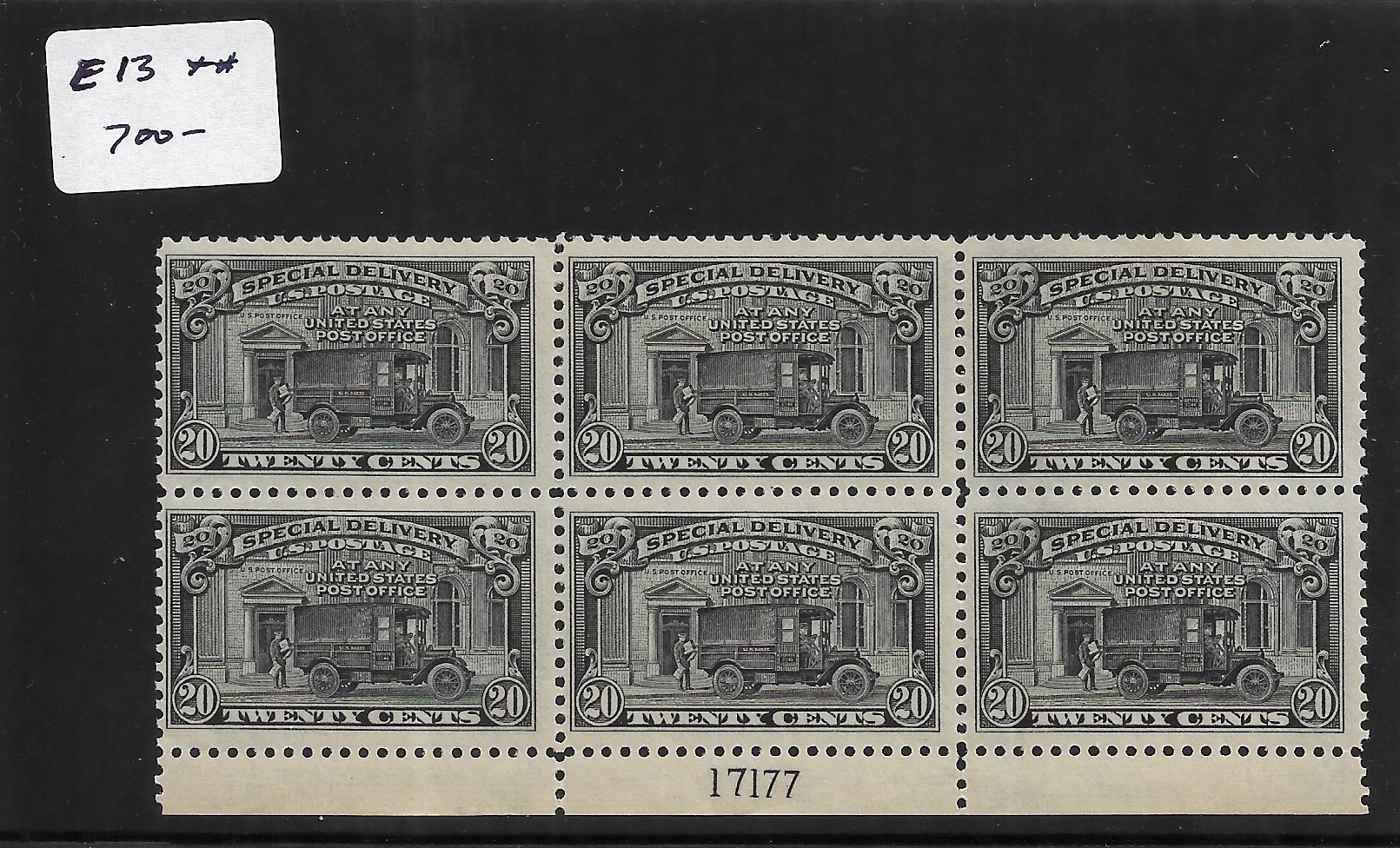 | 20 Special Delivery, Sc # E14, MNH Plate Block. | Price: $500.00