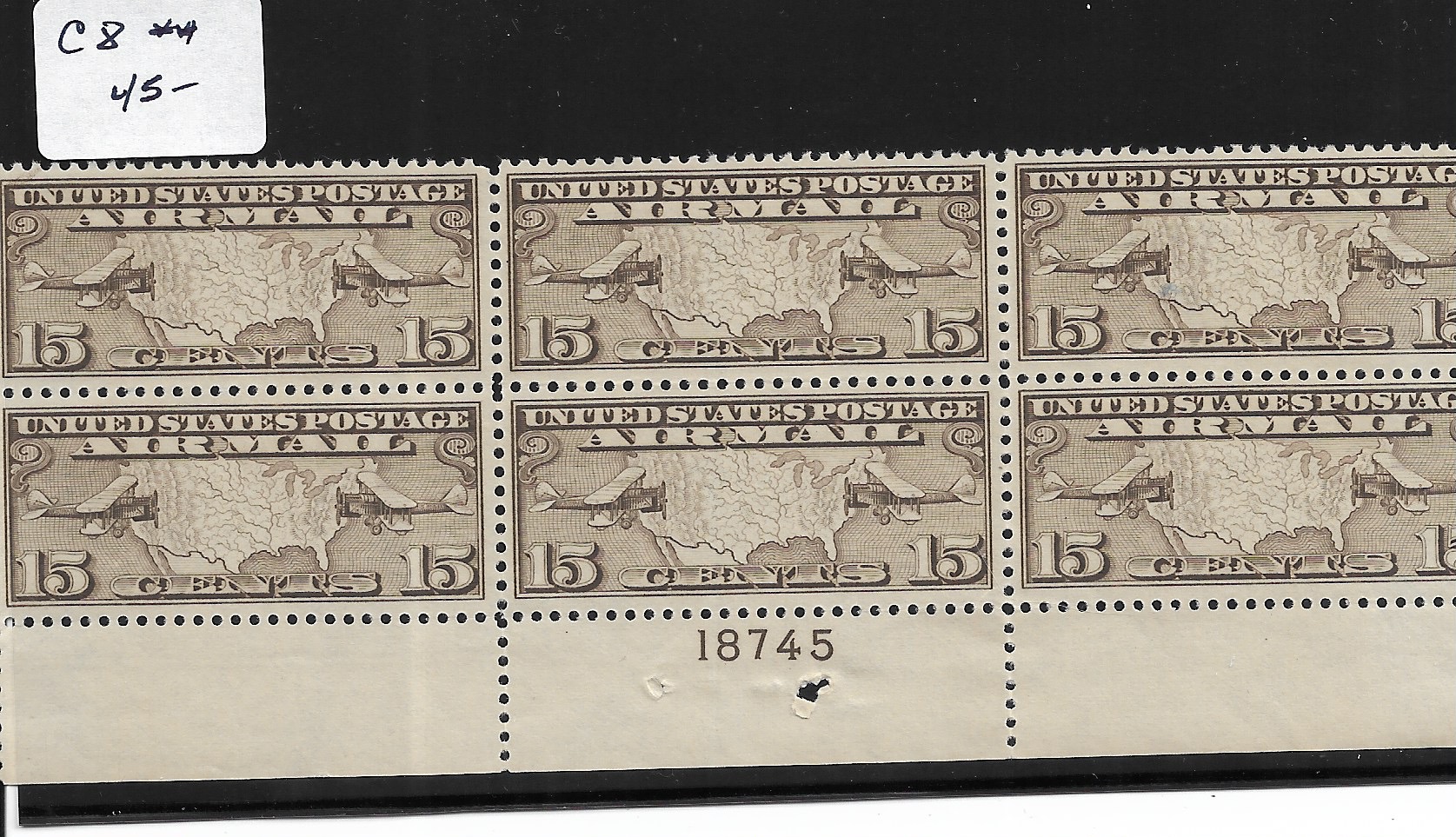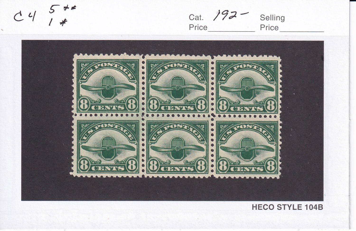 | 8c Airmail, Sc #C4, Blk/6, (5 MNH, 1 MH). | Price: $100.00