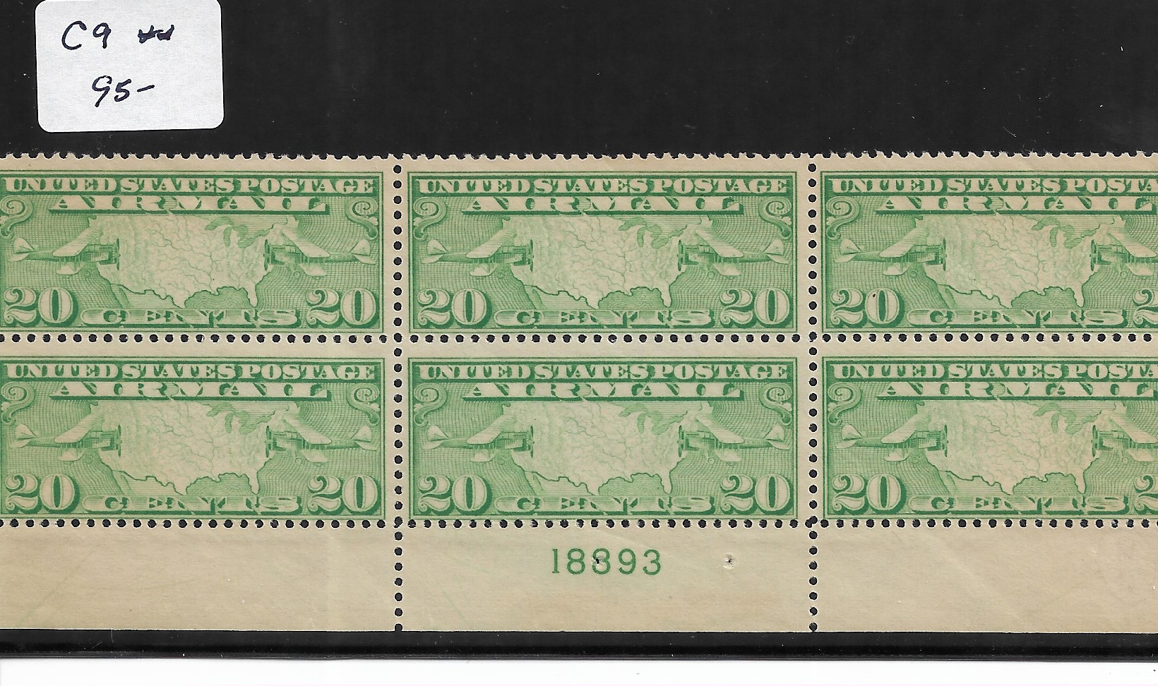 | 20c Plane & Map, Sc # C9, MNH Plate Block. | Price: $65.00