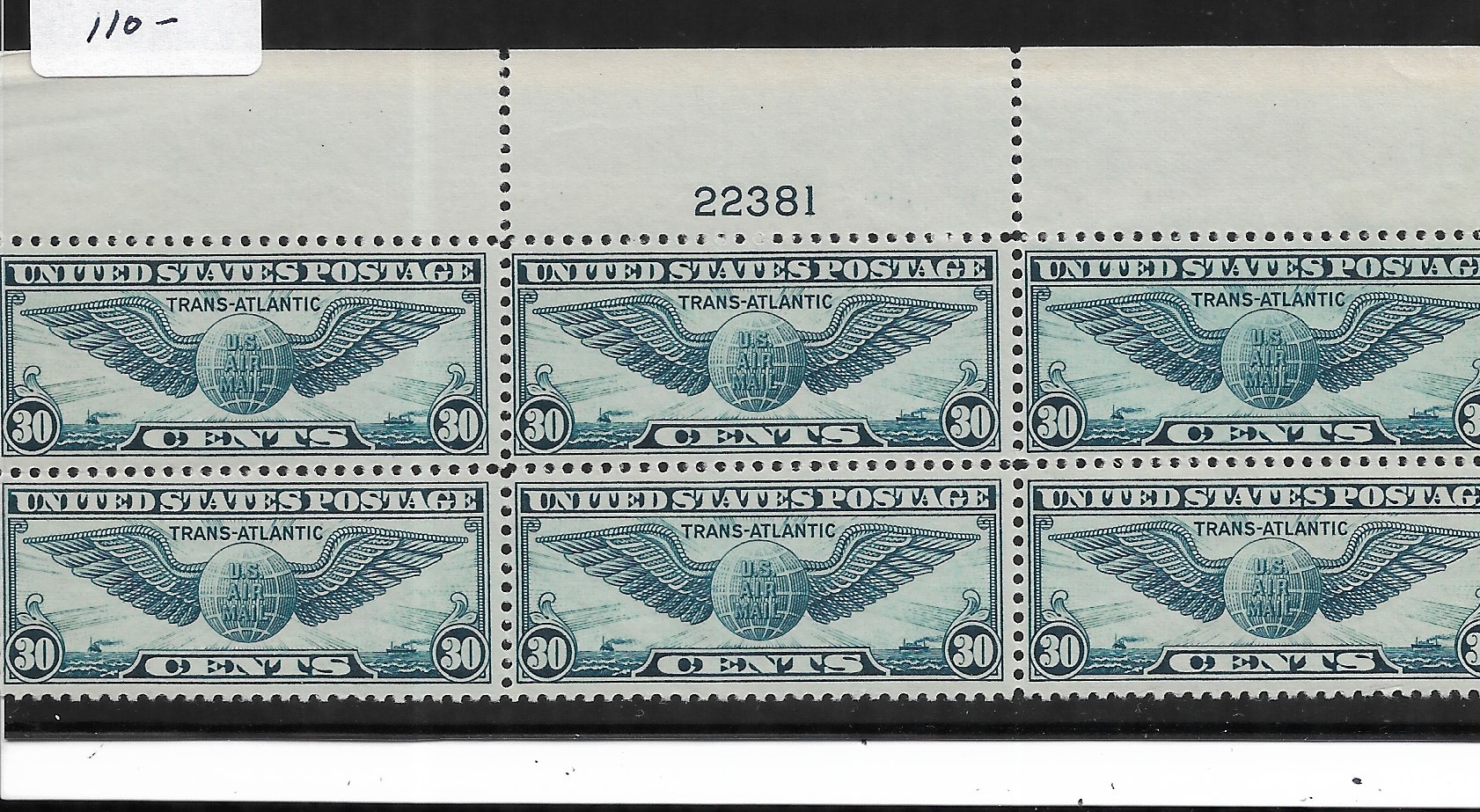 | 30c Winged Globe, Sc # C24, MNH Plate Block. | Price: $85.00