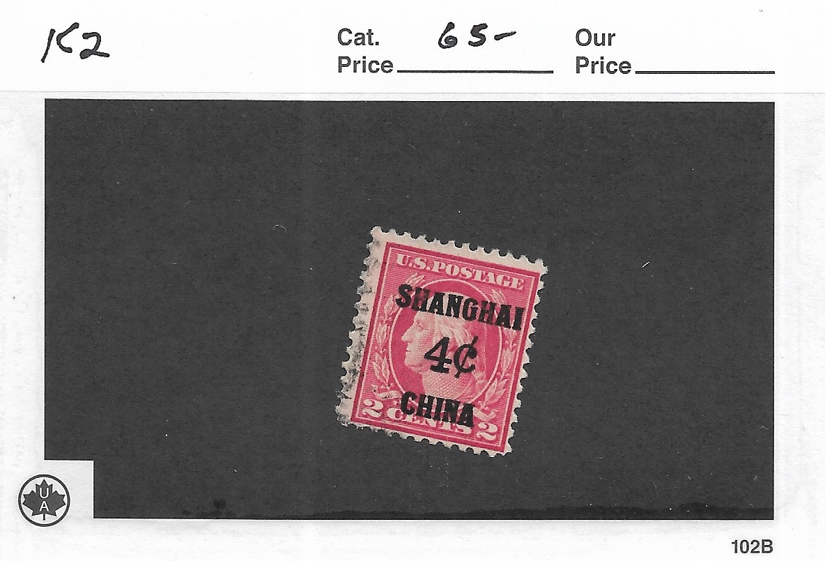 | 2c Shanghai Overprint, Sc #K1, used. | Price: $40.00