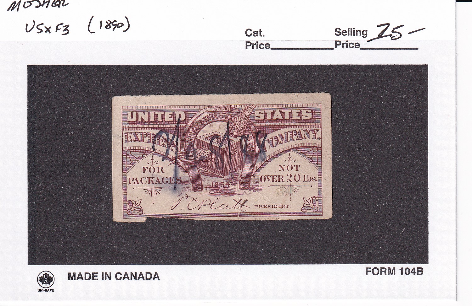 | 1890 United States Express Compant Package Label, Mosher #USXF3, used. | Price: $25.00