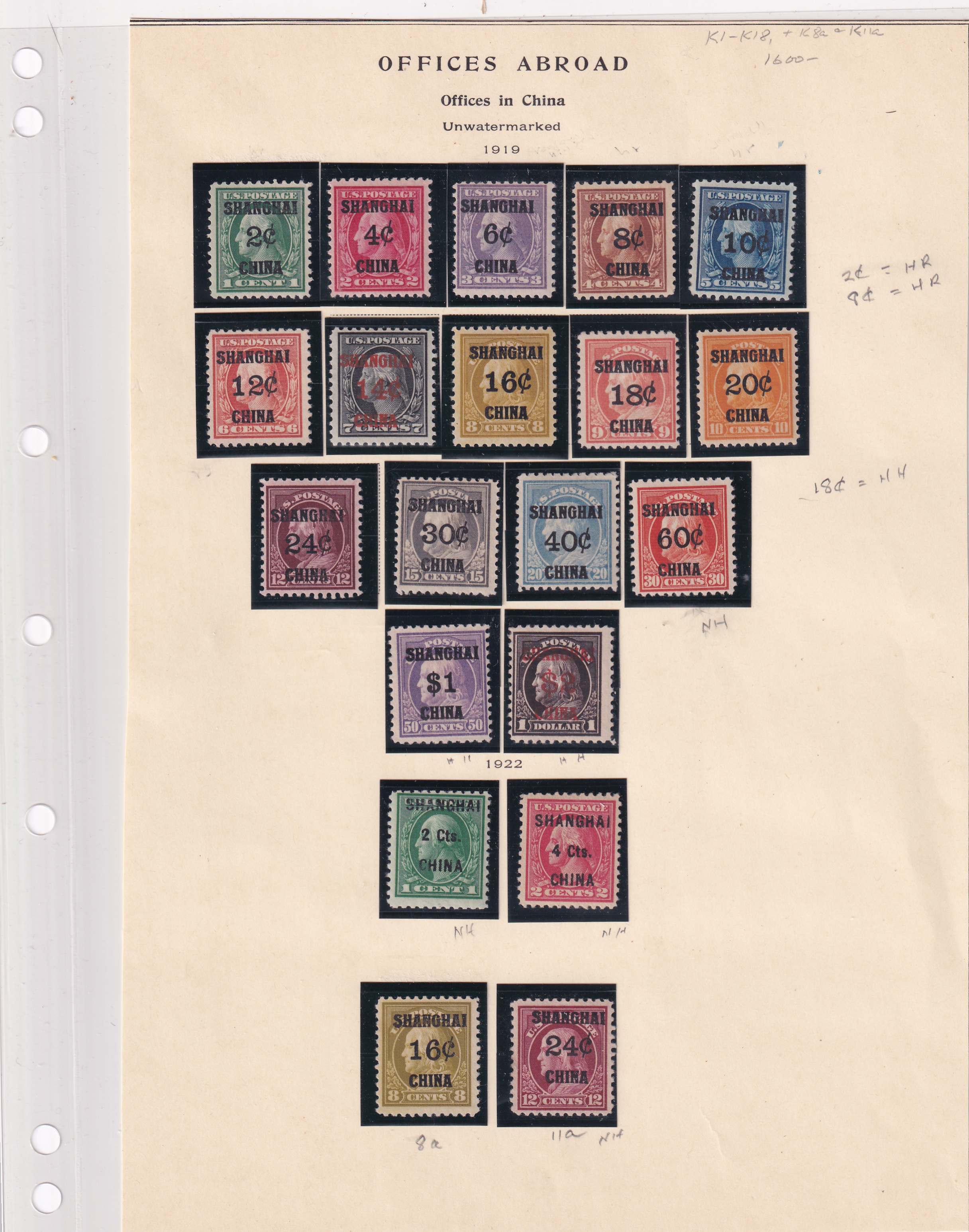 | U.S Shanghai Overprints, Sc K1 - K18 plus K8a & K11a MH/MNH. | Price: $1,600.00