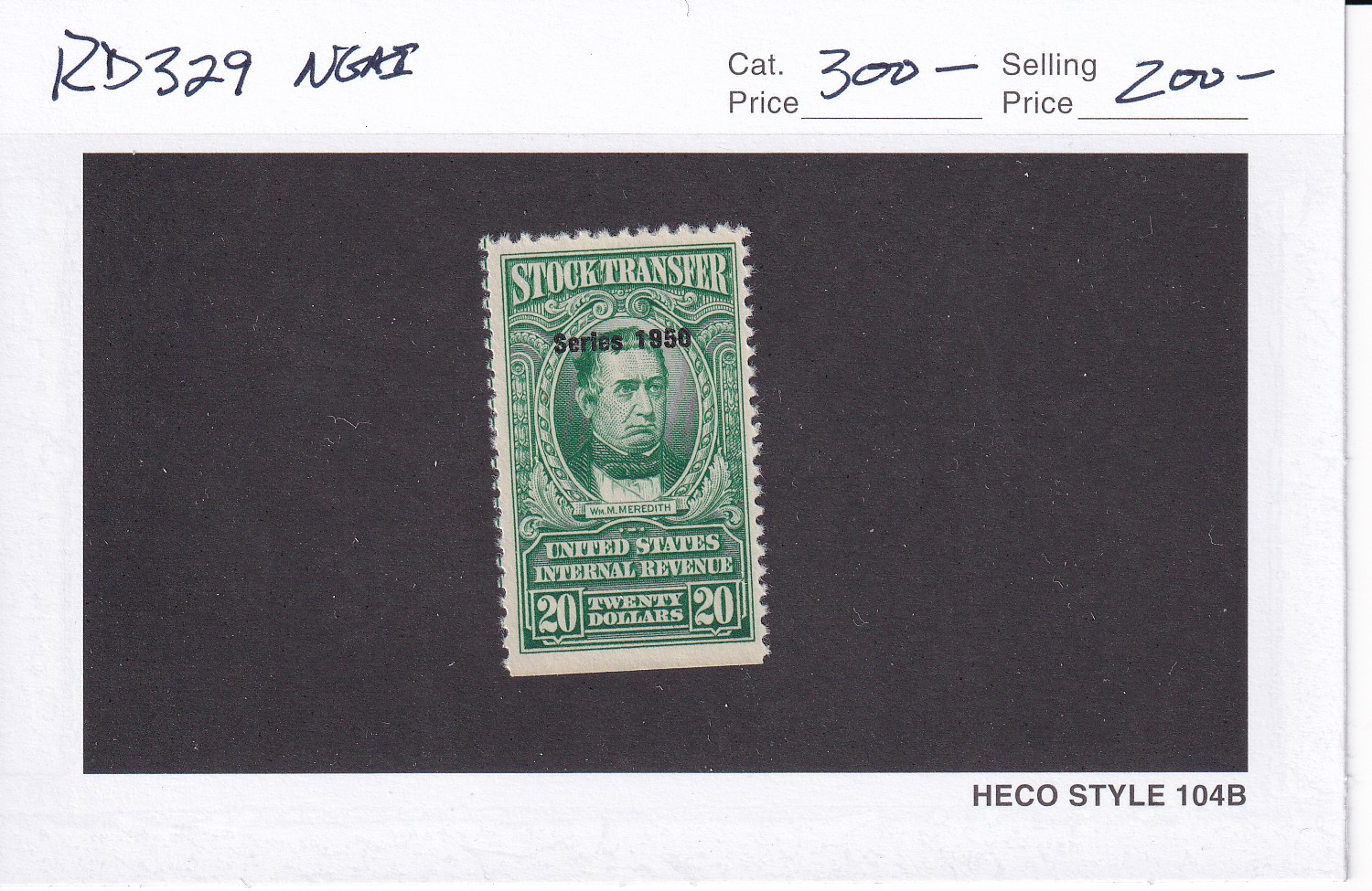 | $20 1950 Stock transfer Stamp, Sc #RD329, NGAI. | Price: $200.00