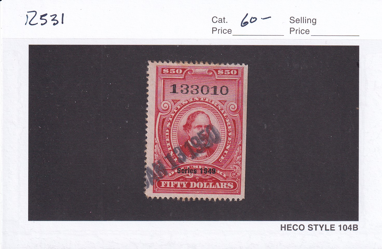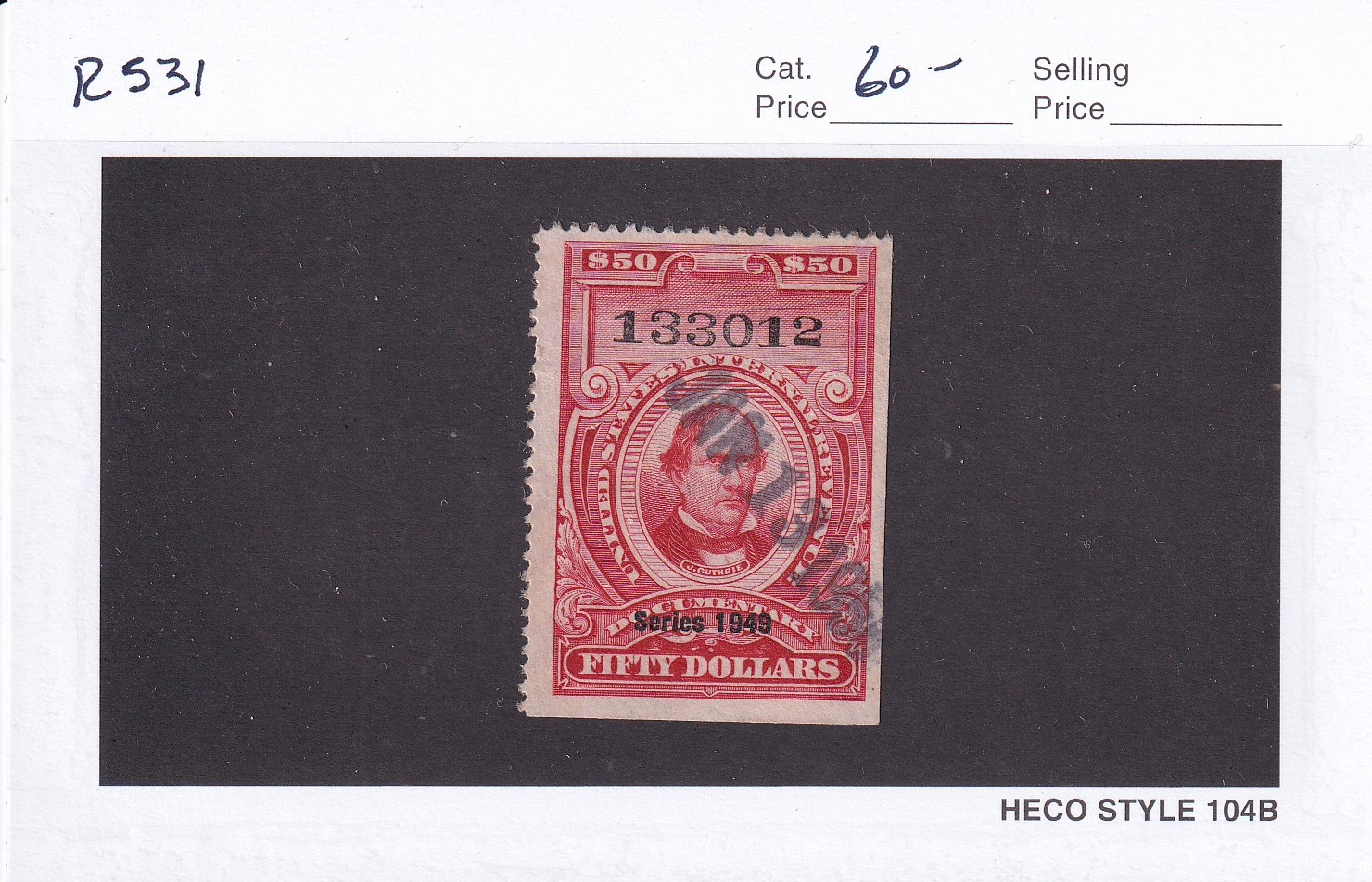 | $50 1949 Documentary tax Stamp, Sc # R531, used. | Price: $40.00