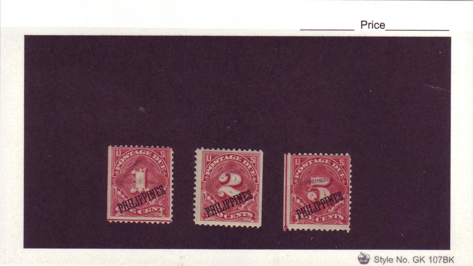 | Philippines: 1c, 2c, & 5c Postage Due SPECIMENS, Scott #J1-J3, MH **Very Scarce**. Guaranteed real. Complete refund. Ray Coughlin verified the overprints. | Price: $650.00