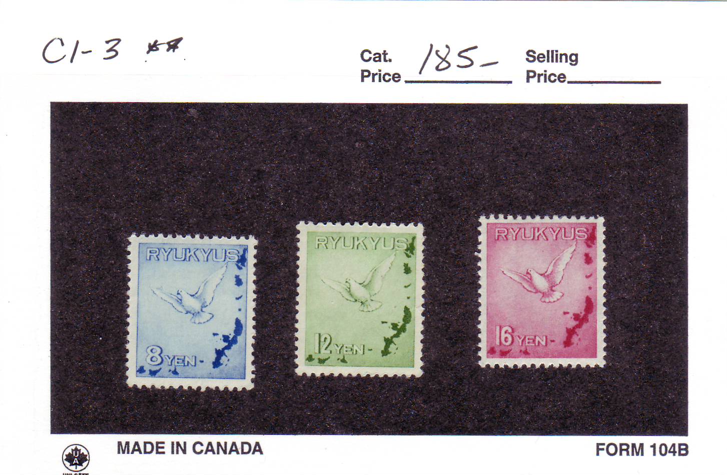 | Ryukyus Island: 8, 12 & 16 Yen Airmails, C1-C3, MNH. | Price: $100.00
