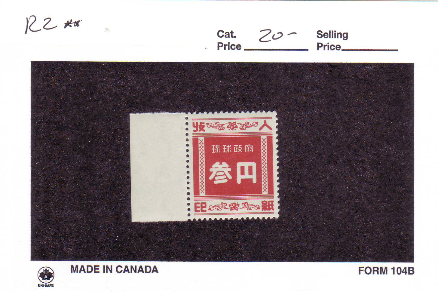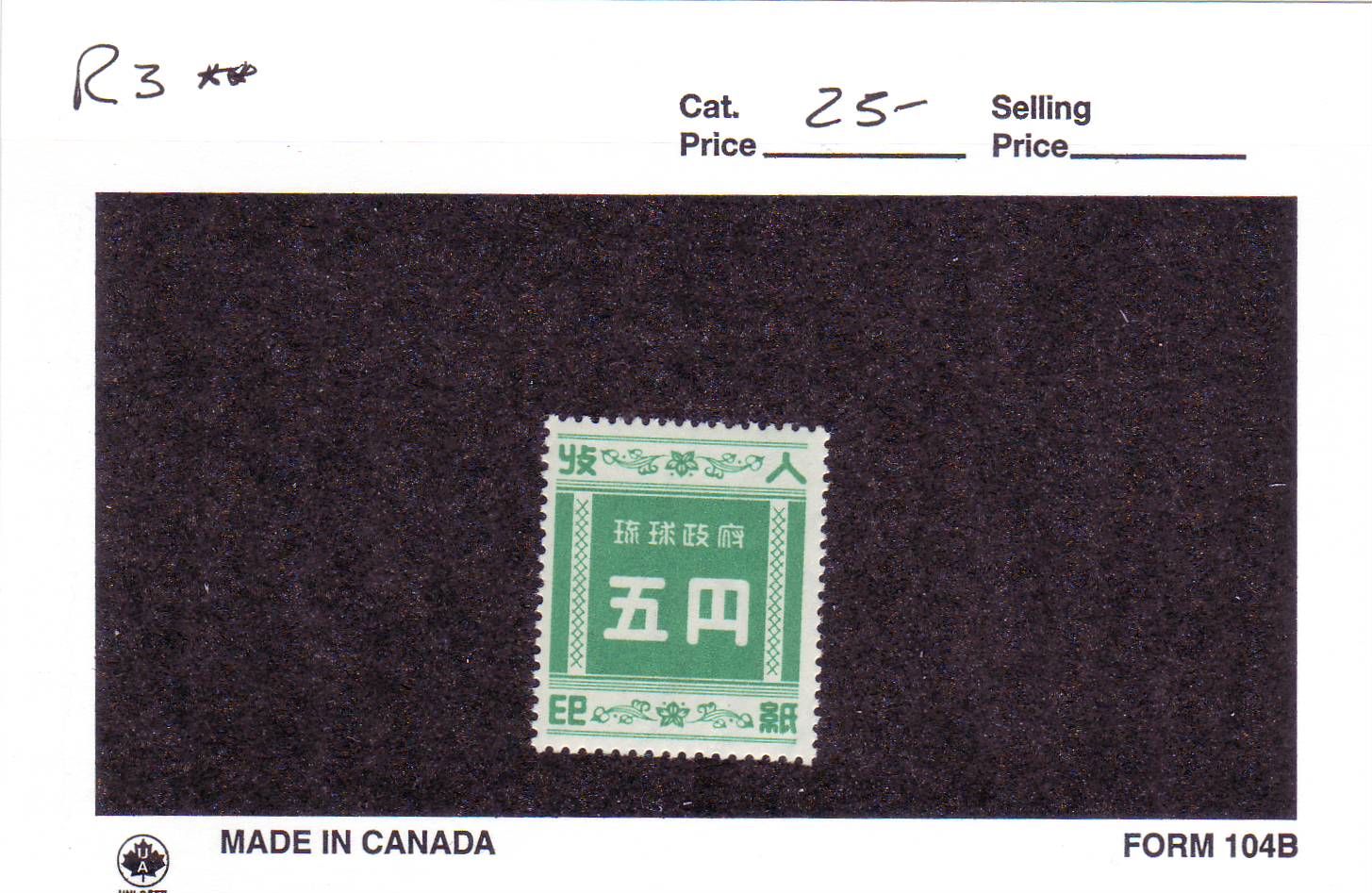 | Ryukyus Island: Revenue: R3, MNH. | Price: $17.00