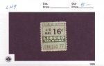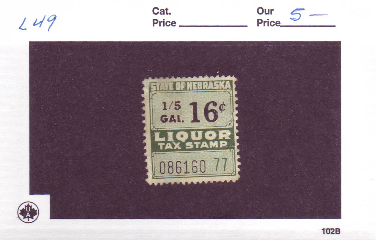 | Nebraska: 16c 1/5 Gal Liquor Tax Stamp, L49. | Price: $5.00