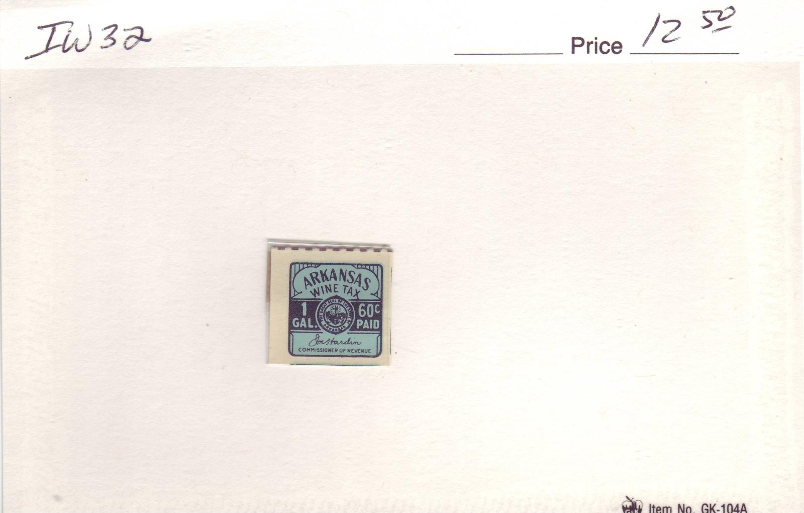 | Arkansas: 60c Imported Wine Tax Stamp, #IW32. | Price: $12.50