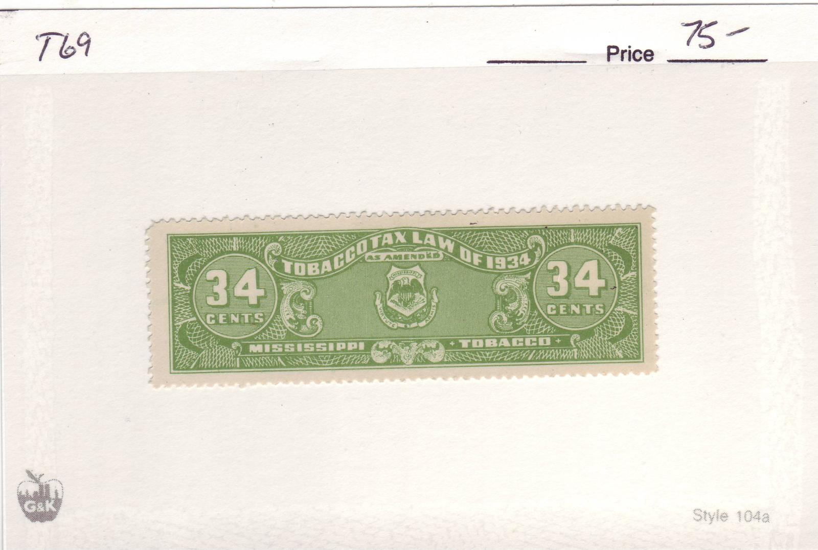 | Mississippi: 34c Tobacco Tax Stamp, #T69. | Price: $75.00