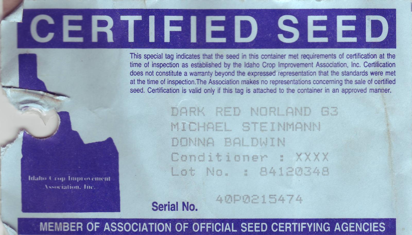 | Idaho: Certified Seed Potatoe Tag, used. | Price: $10.00