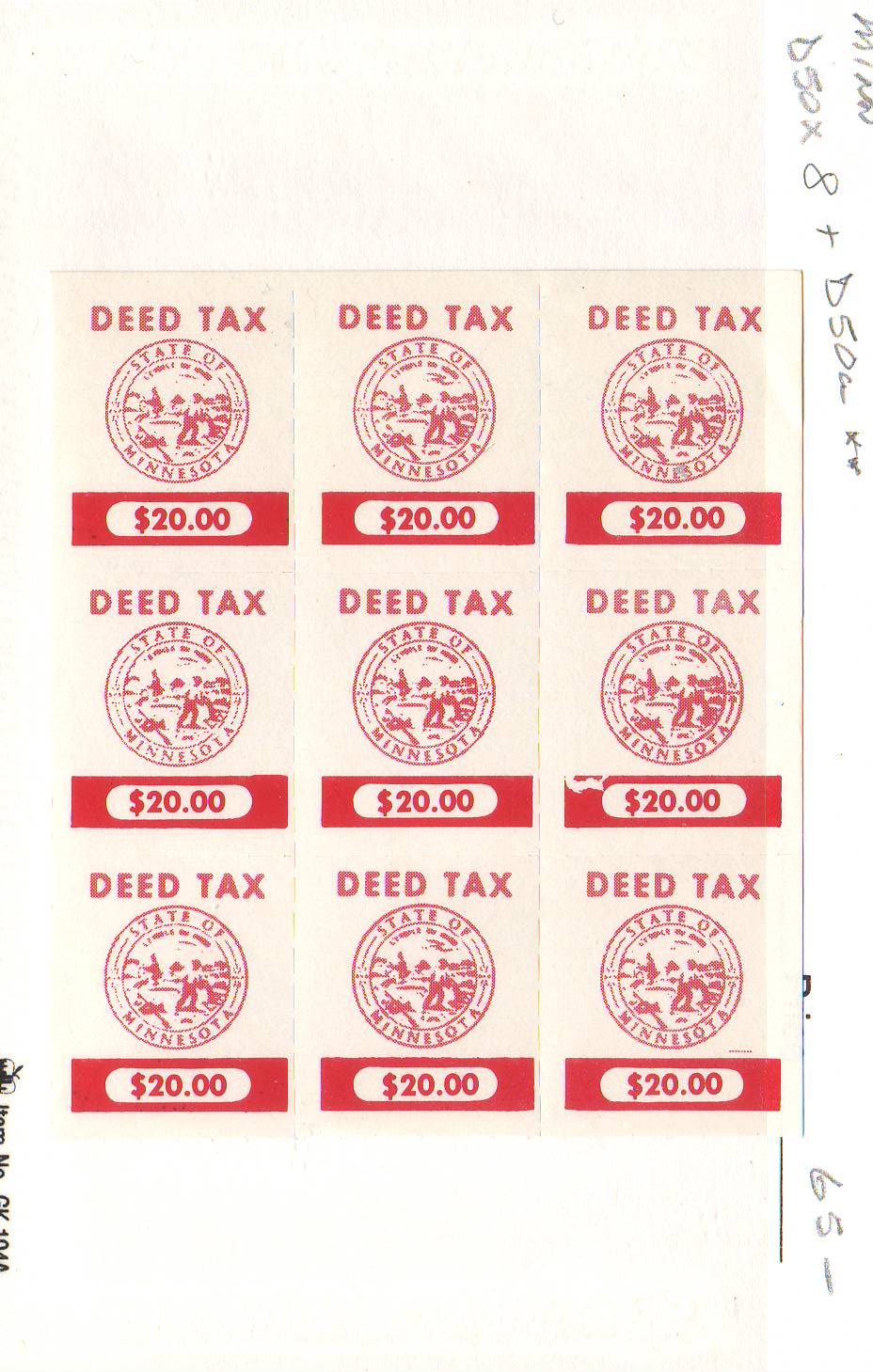 | Minnesota: #20 Deed Tax Stamps, Blk/9 D50x8 & D50a, MNH. | Price: $40.00