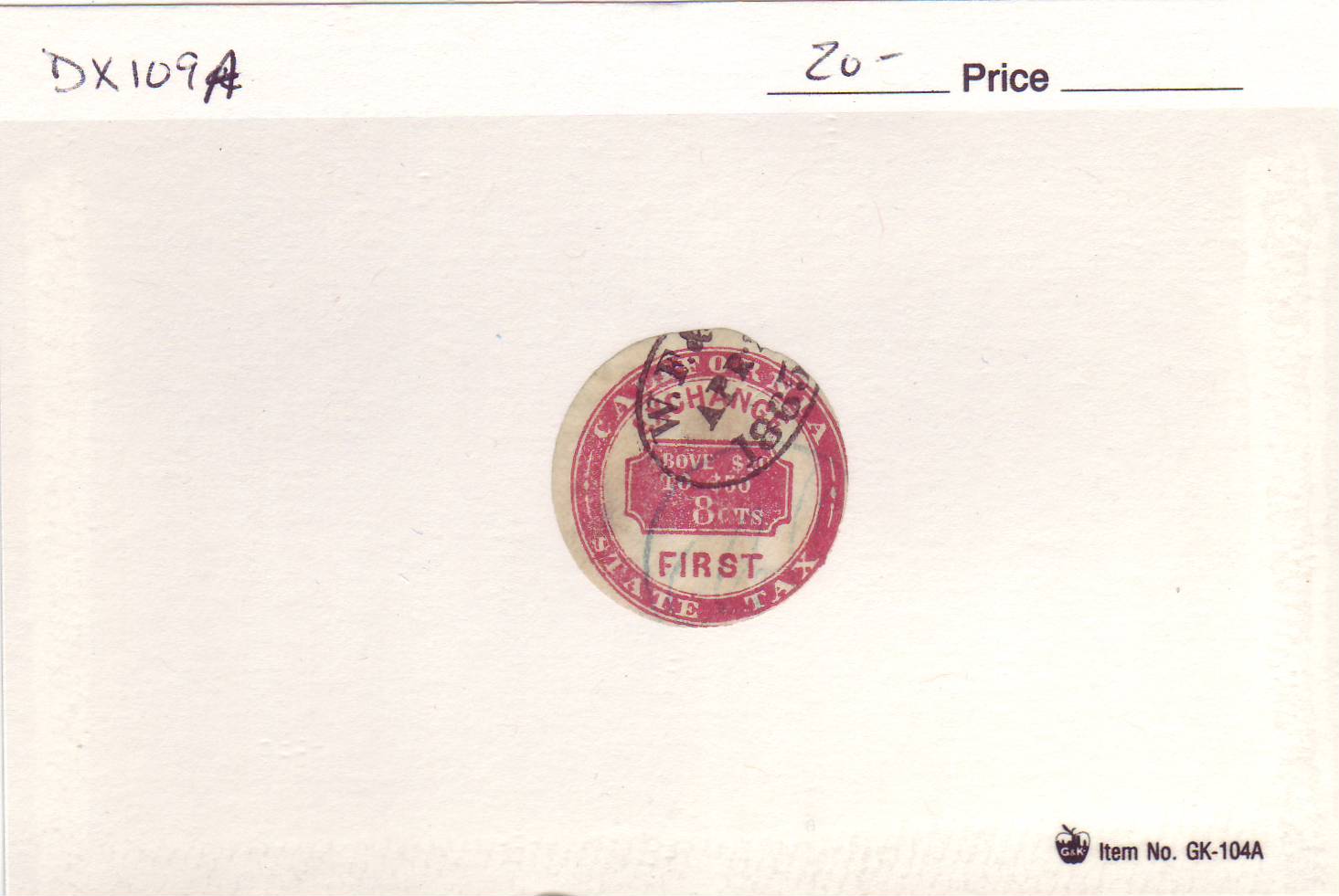 | California: Exchange State Tax, First, DX109A, used. | Price: $20.00