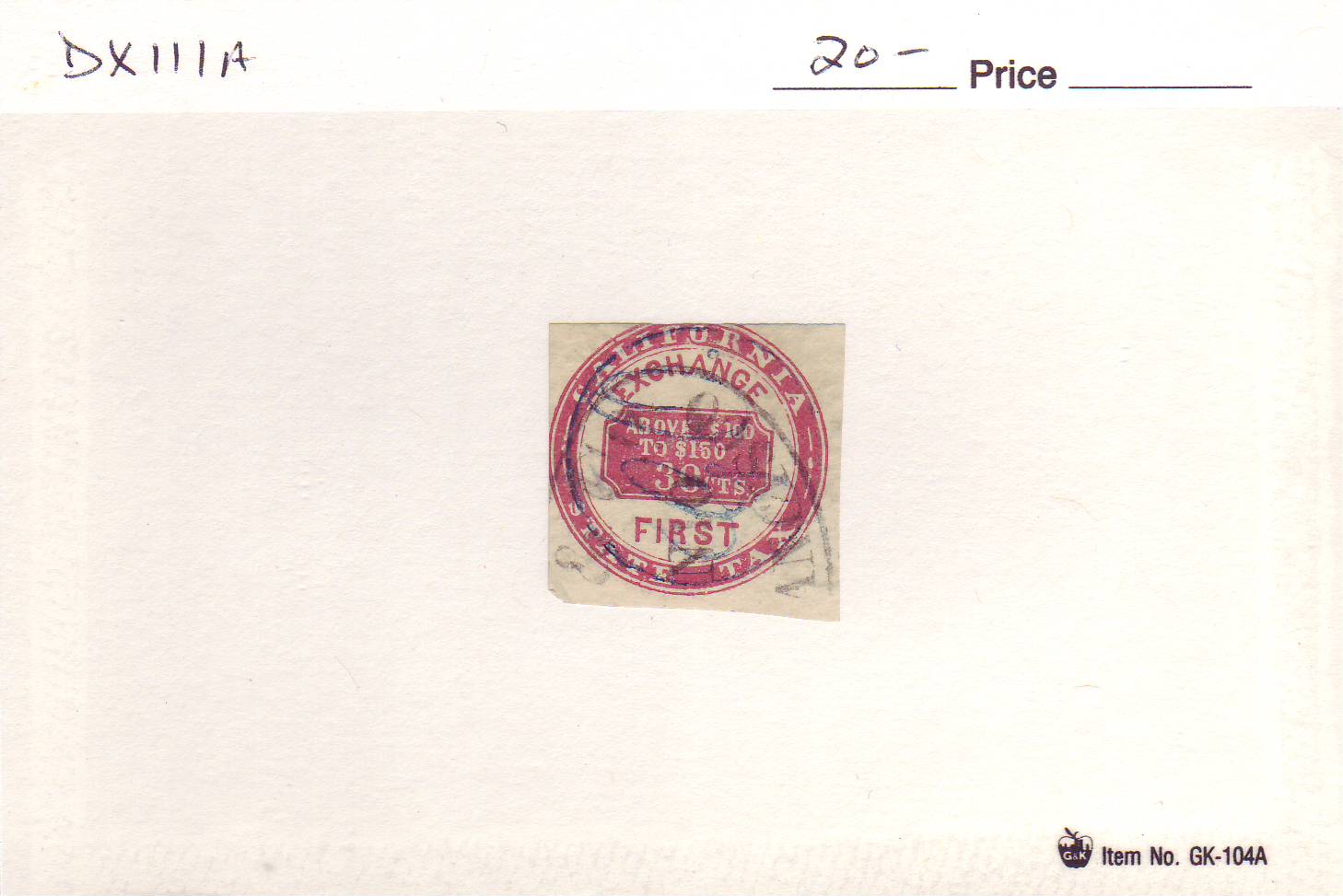 | California: 20c Exchange First, DX2. These are sold at $20.00 each. | Price: $20.00