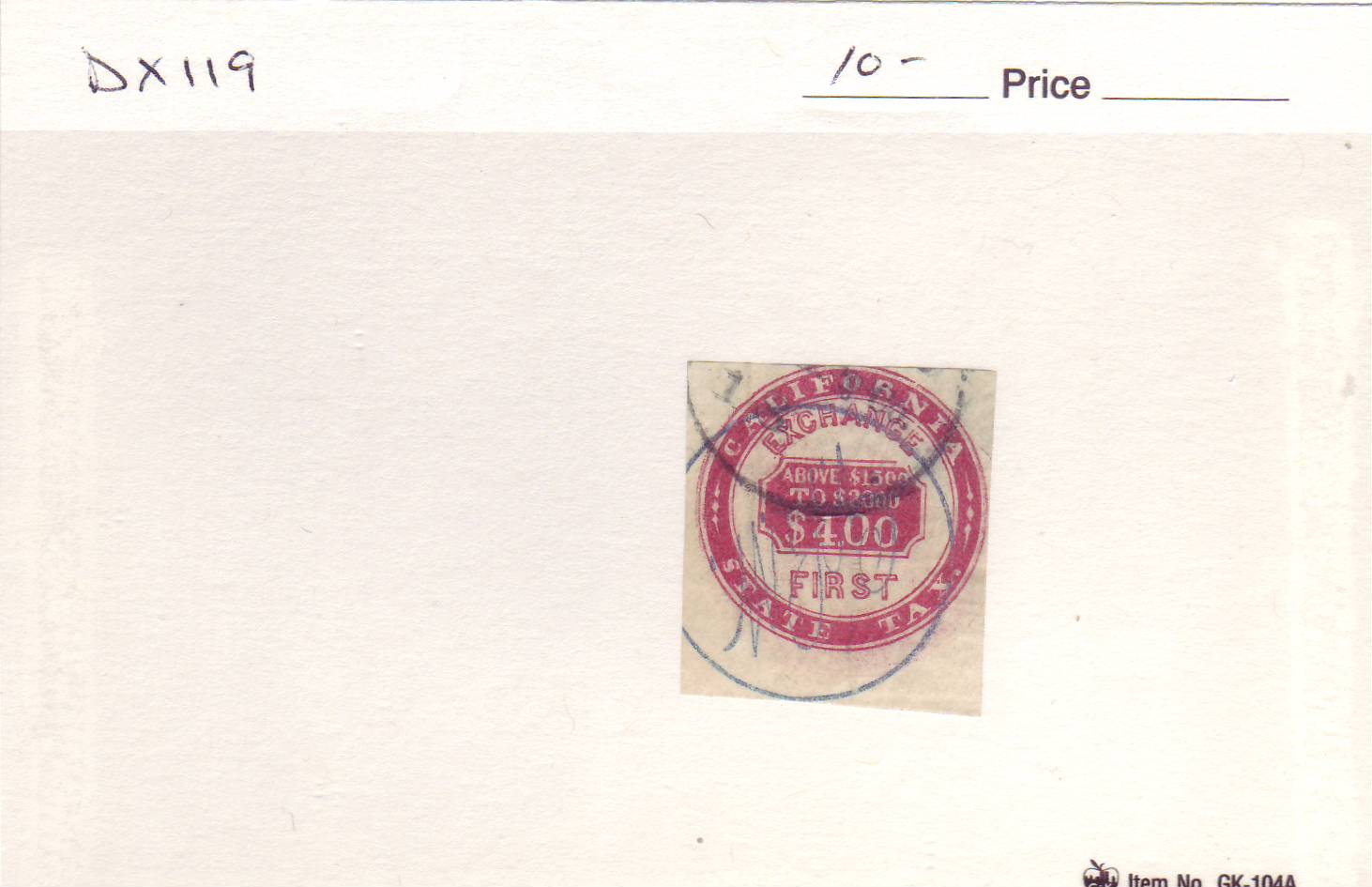 | California: Exchange State Tax, First, DX119, used. | Price: $10.00