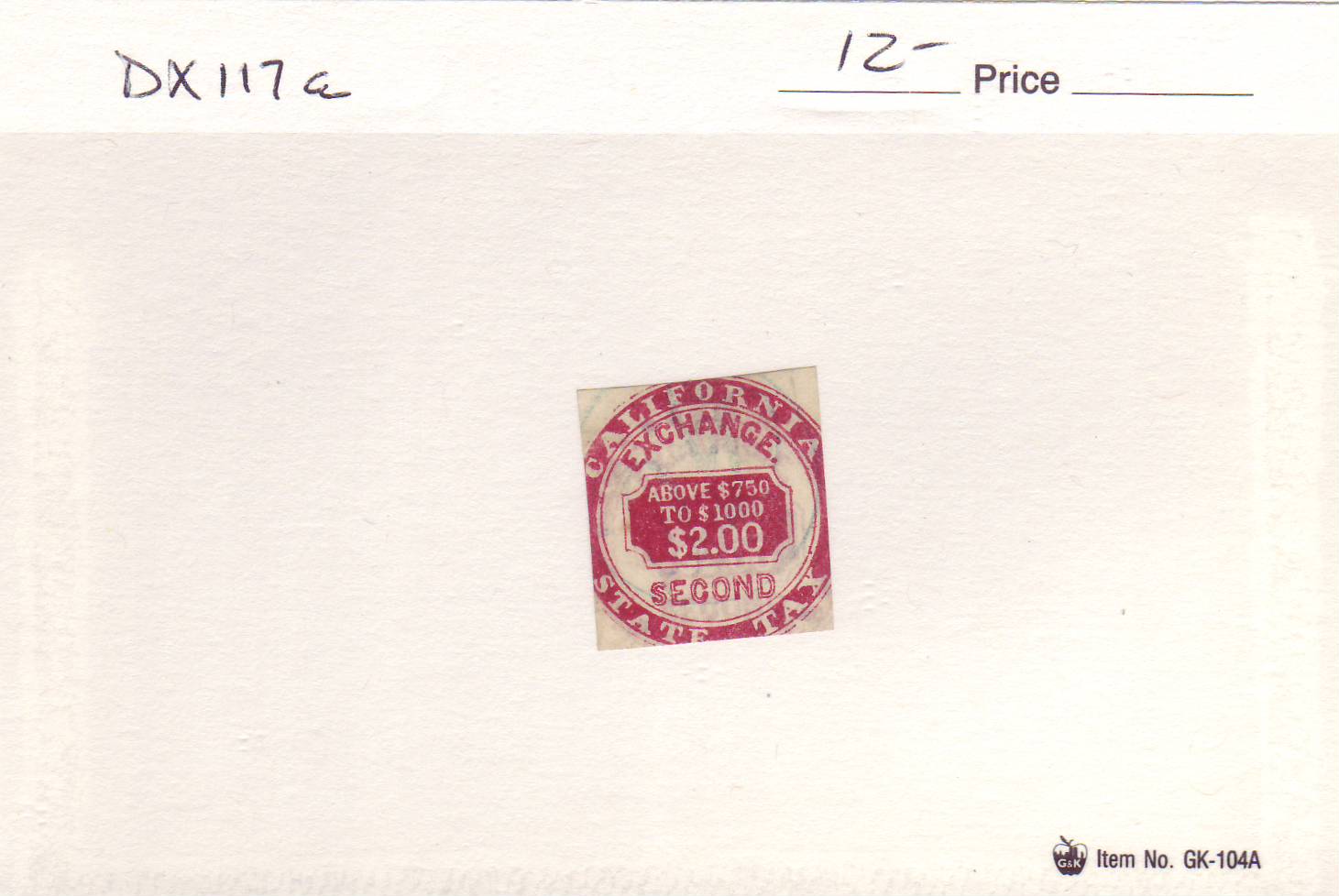 | California: Exchange State Tax, Second, DX117a, used. | Price: $10.00