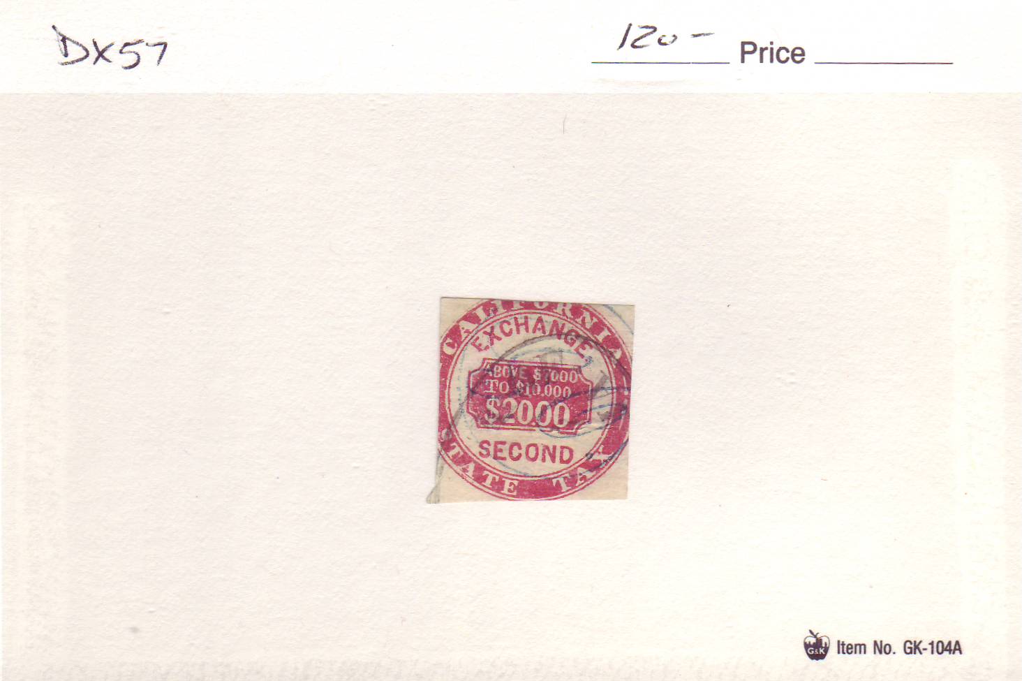 | California: Exchange State Tax, Second, DX57, used. | Price: $100.00