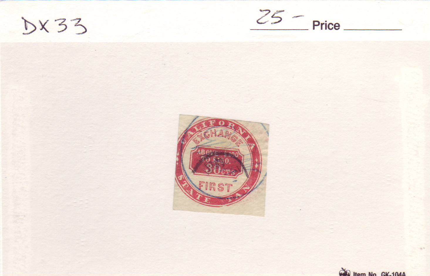 | California: Exchange State Tax, First, DX33, used. | Price: $20.00