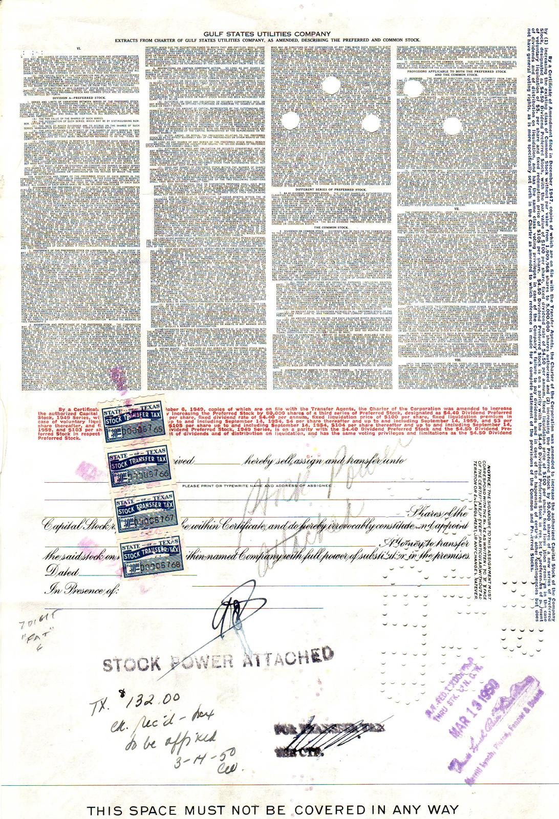 | Texas: $30 Stock Transfer Tax Stamps Strip/4 on Gulf States Utilities Stock Certificate. | Price: $200.00