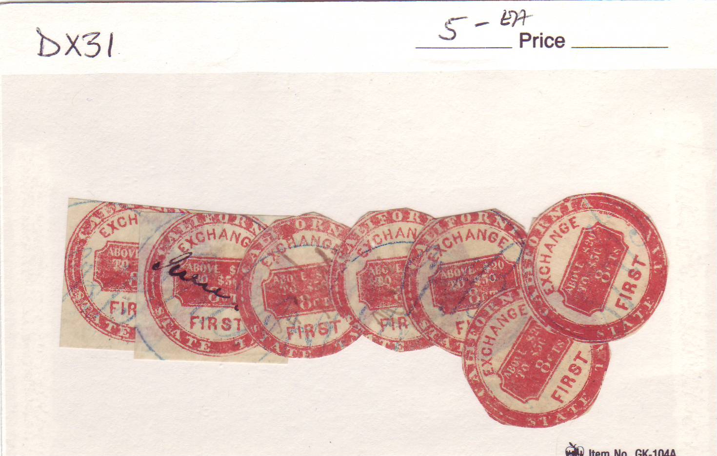 | California: 8c Exchange First, DX31. These are sold at $5.00 each. | Price: $5.00